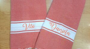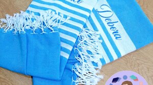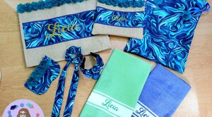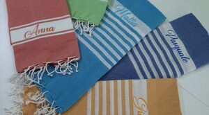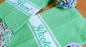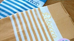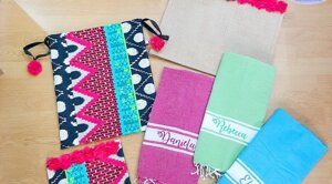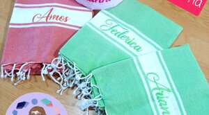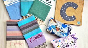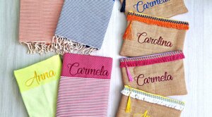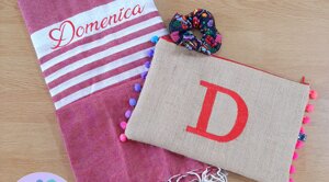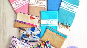 L'estate è una stagione meravigliosa piena di voglia di vivere e di colori! Non andare in spiaggia o in piscina senza il tuo telo ricamato, la tua bag in juta o il tuo portatutto personalizzato!